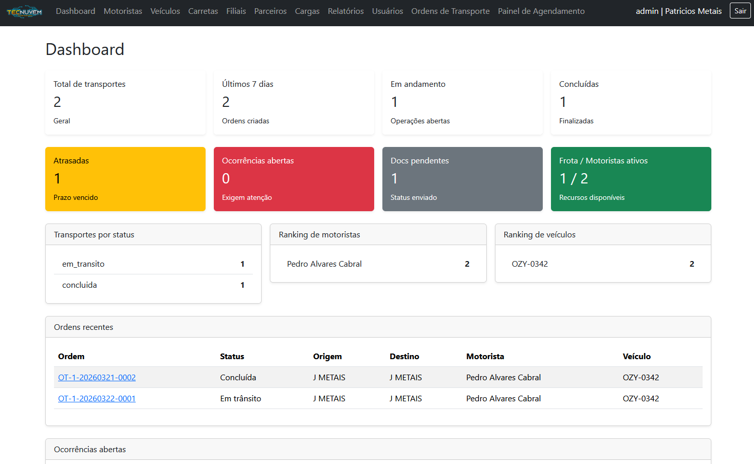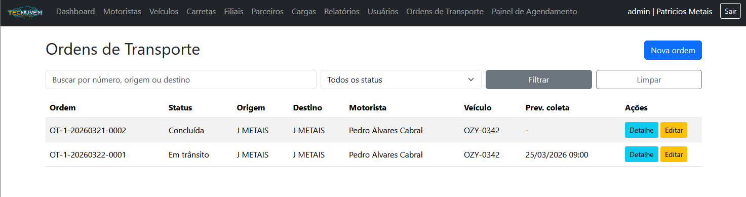Controle completo das operações
